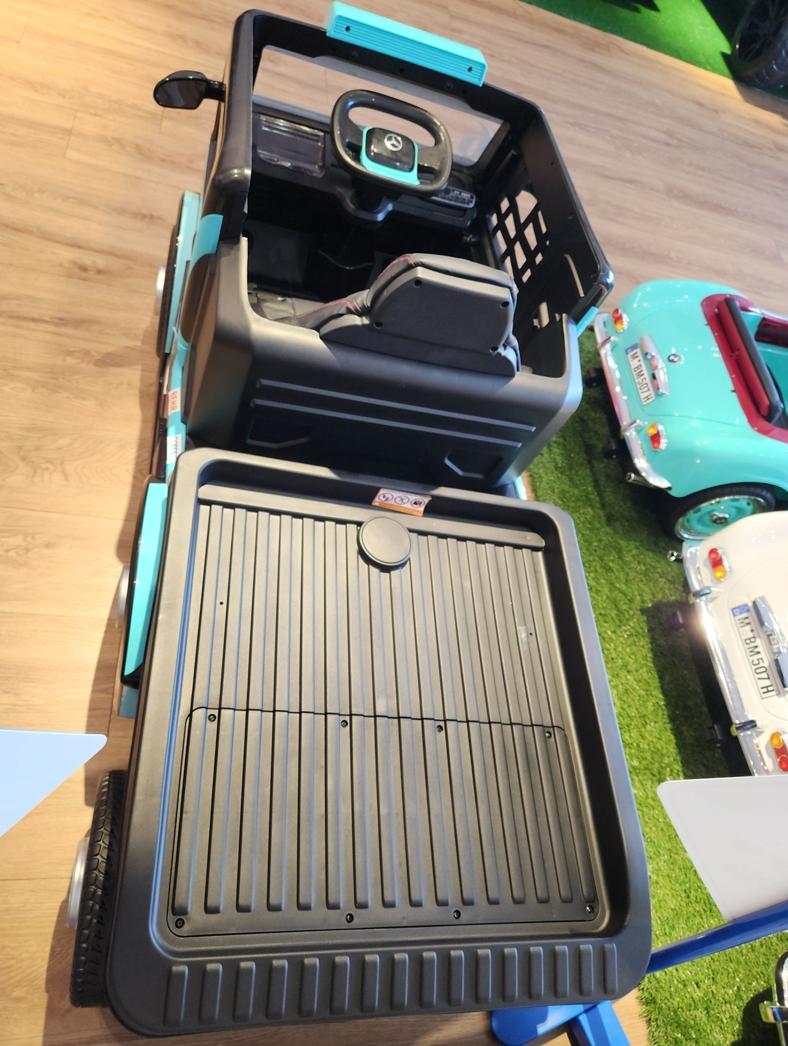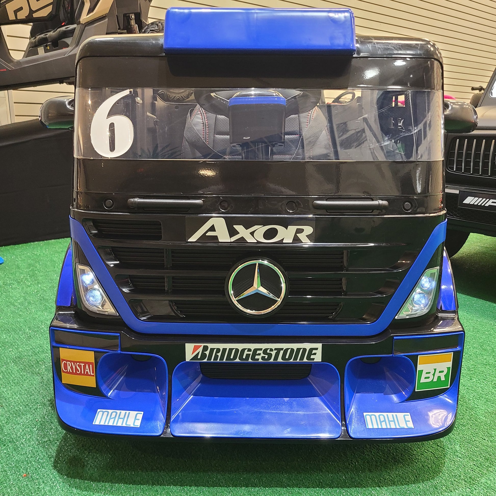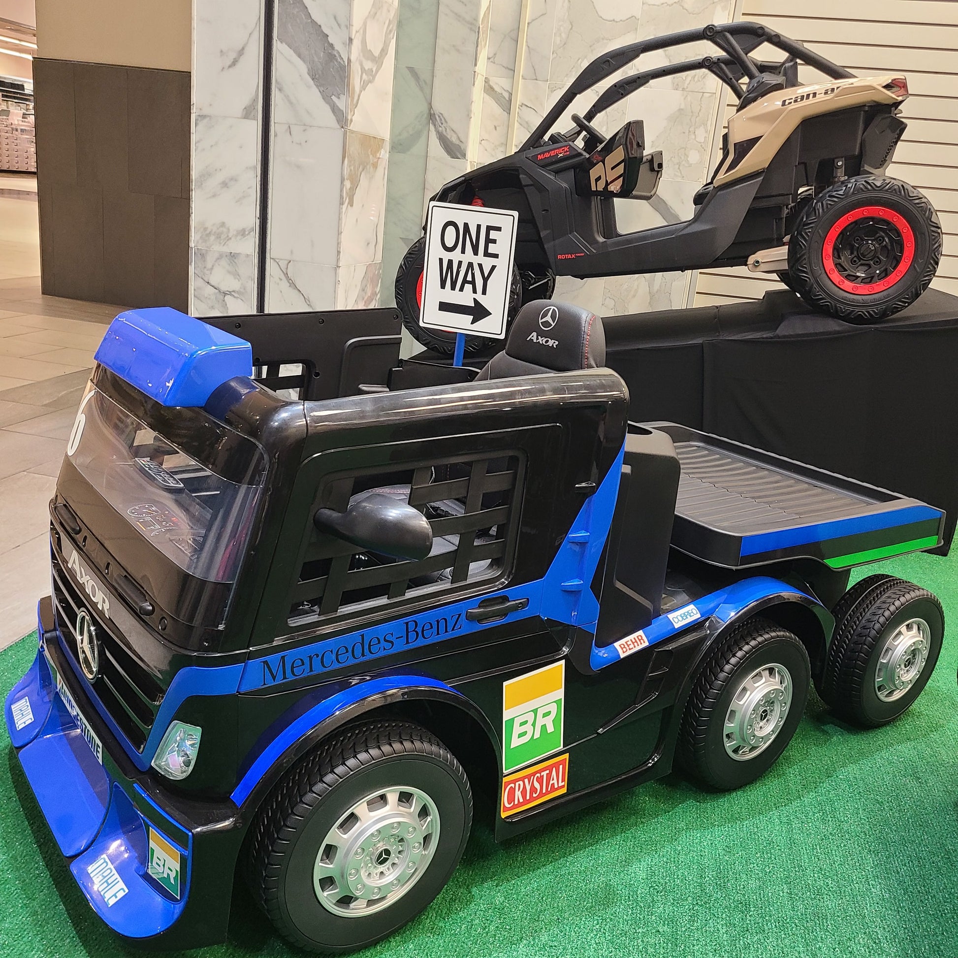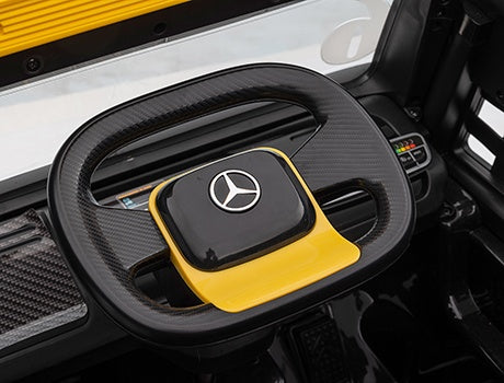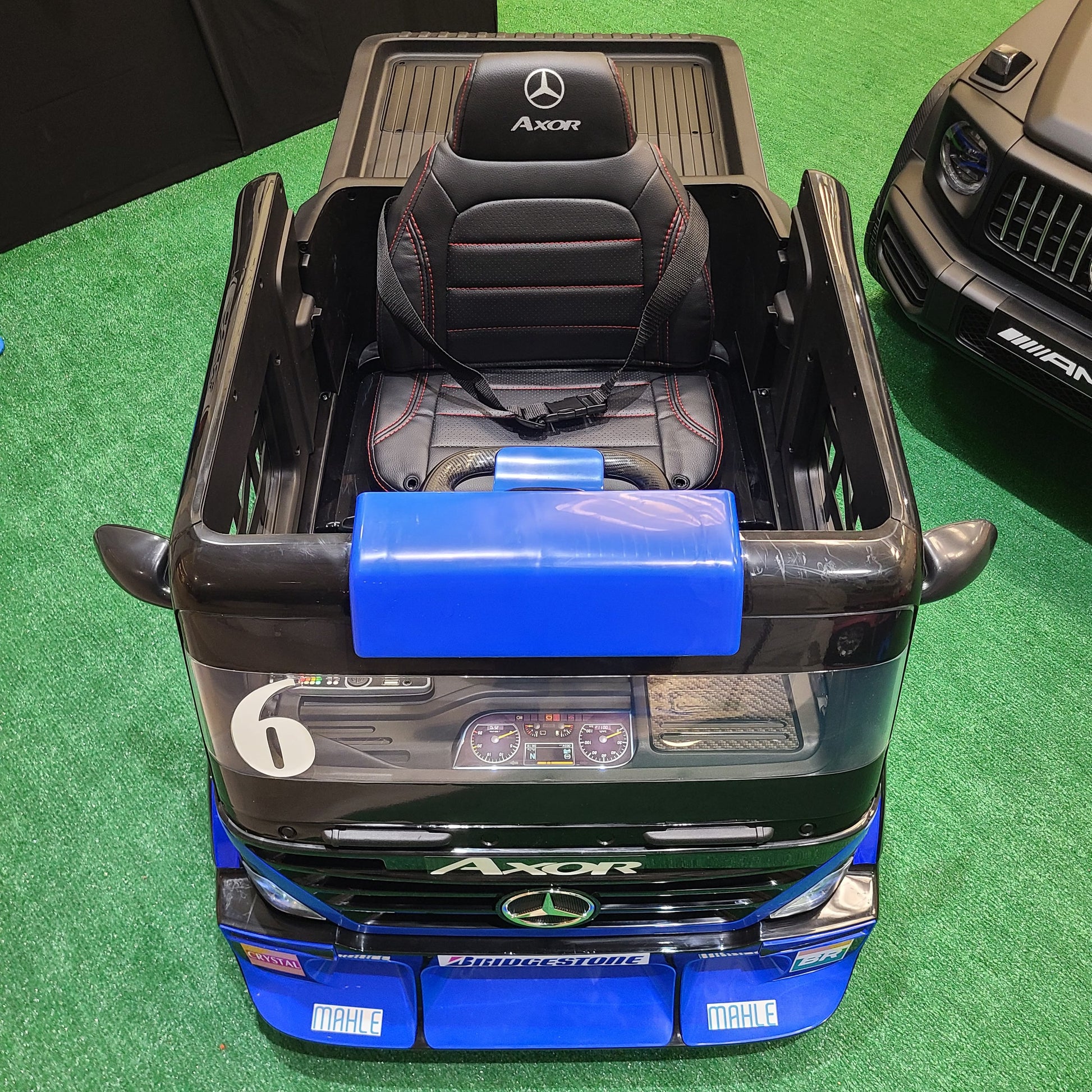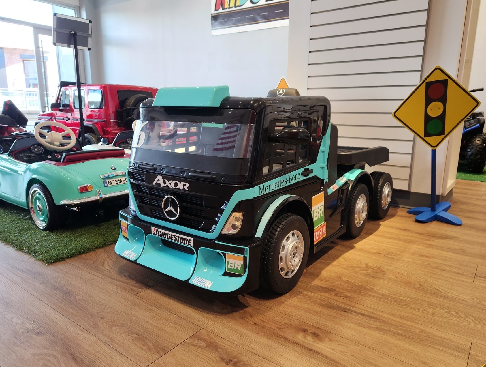 Officially Licensed Mercedes Flat Bed Ride-on Tow Truck. Comes with Removable "Undockable" Bed. Leather Captain Seat with Seat Belt. Rubber Tires. Parental Remote Control. Bluetooth, Low Speed / High Speed Control. It can carry up to 60 Lbs kid will Towing 100 Lbs of Cargo! This truck comes with 24V 7 AH Battery for 1-2 hours of Playtime.