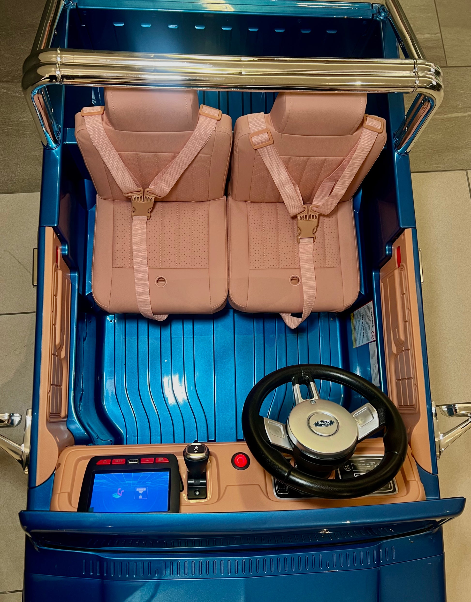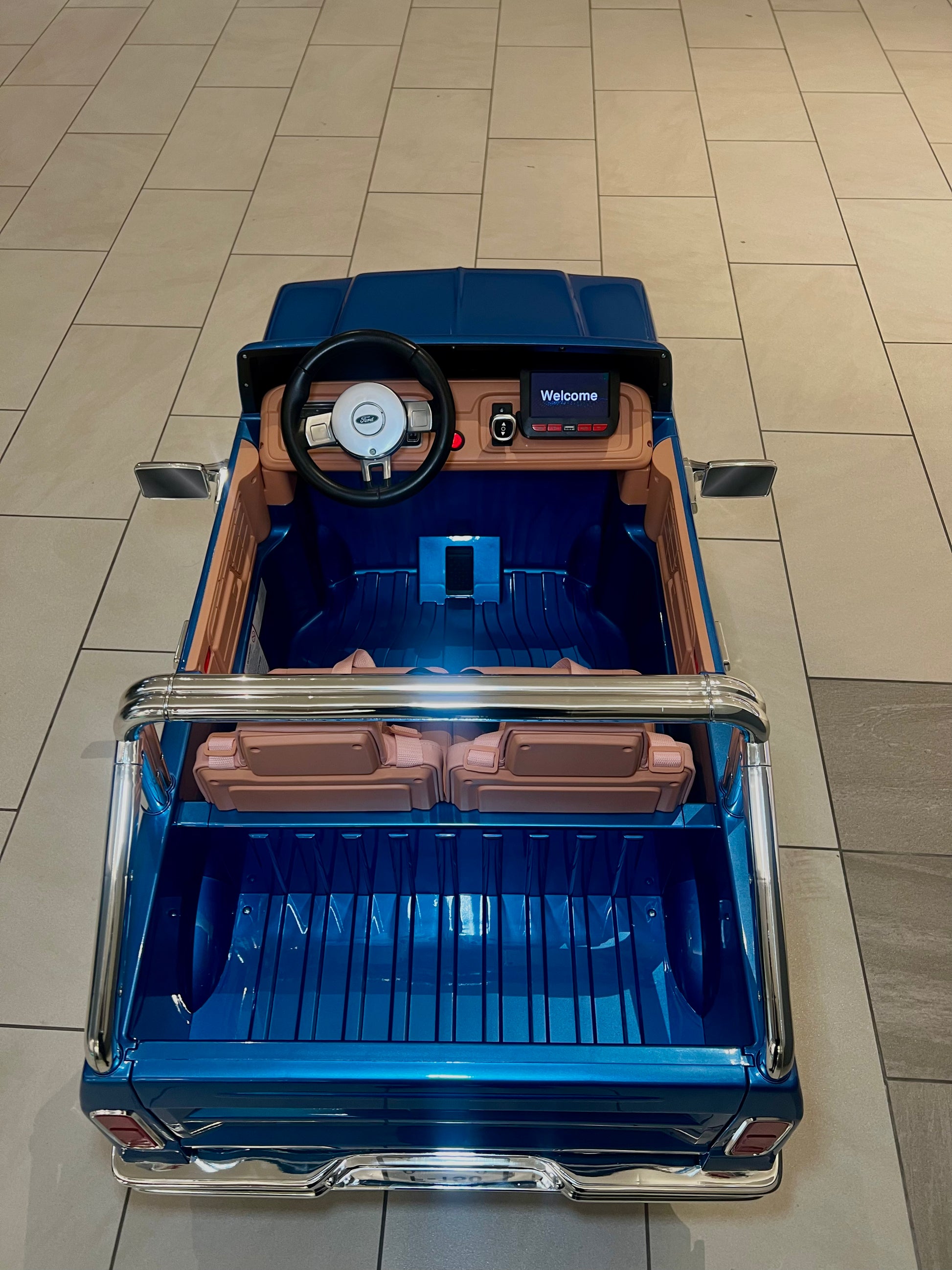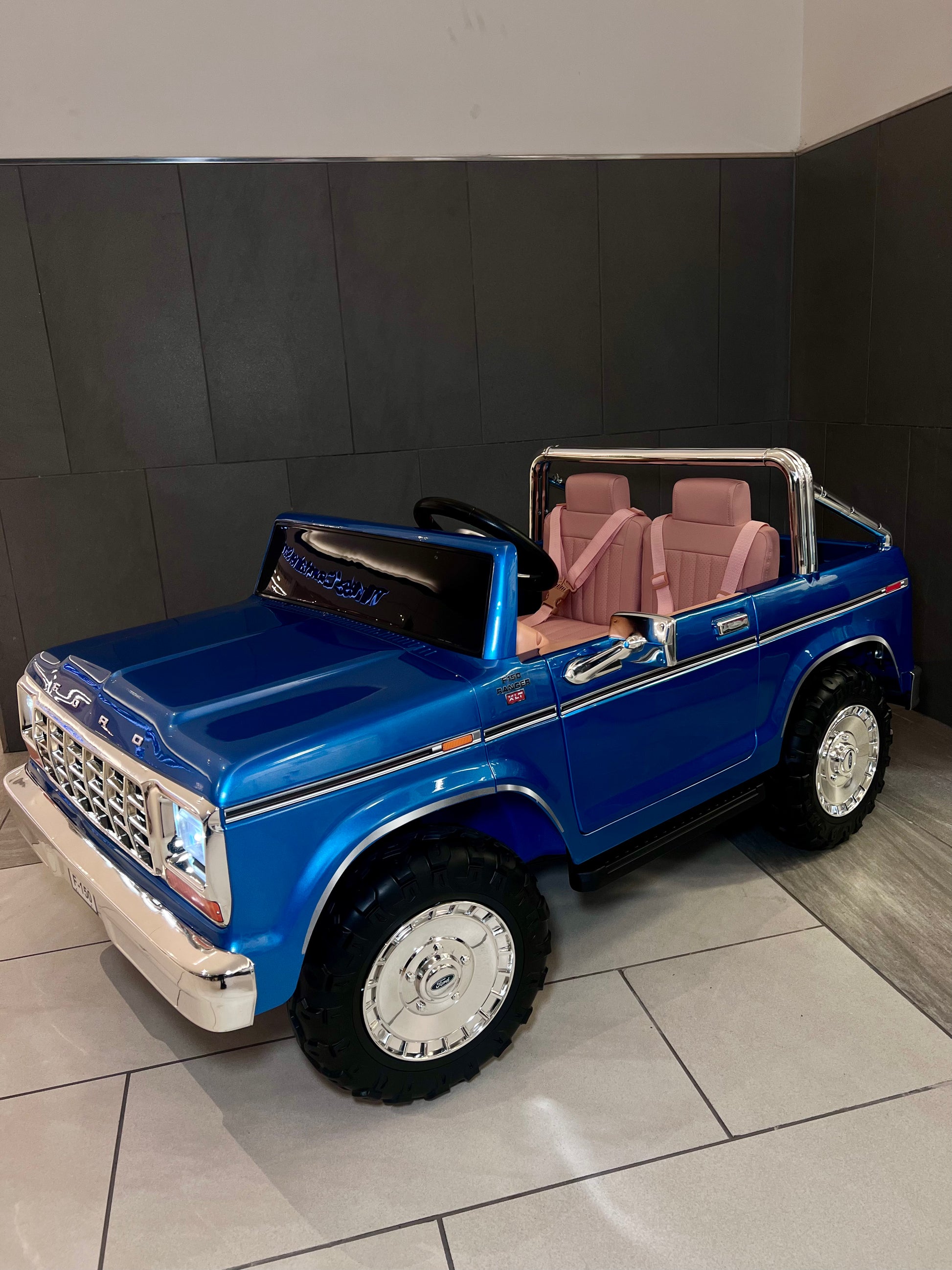 Turn back the clock and light up their imagination with this Retro Ford F150 ride-on truck. Classic square-body styling, chrome-look grille, and big off-road tires give it a real vintage truck vibe, while bright LED headlights and a realistic steering wheel make every drive feel epic. Perfect for little drivers who love adventure, this sturdy ride-on is built to handle hours of play and look amazing parked in any playroom or driveway.
